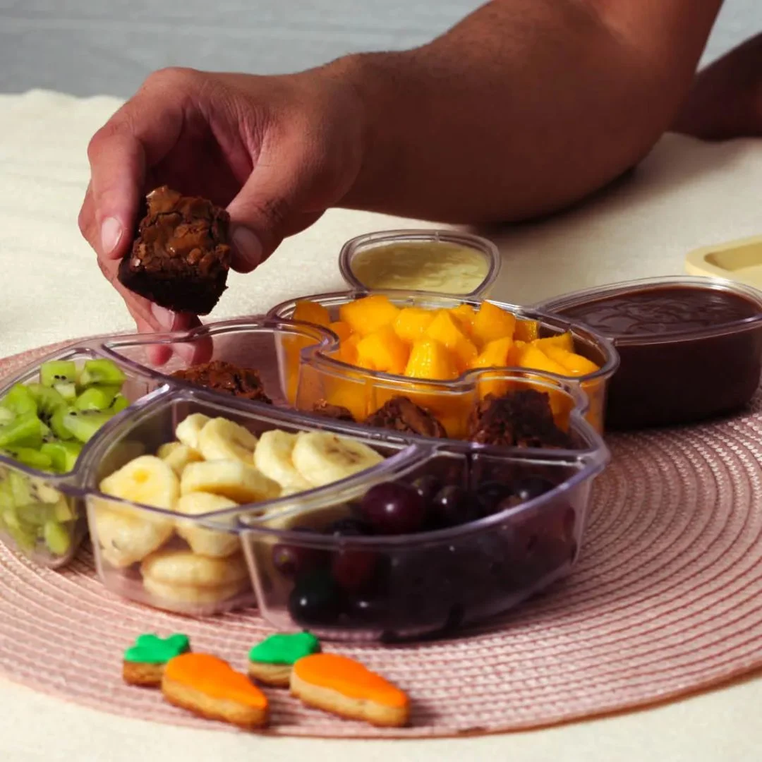 A petisqueira (fondue box) temática de coelho é ideal para quem deseja transformar momentos especiais em experiências memoráveis. Seja para uma mesa de Páscoa caprichada, um brunch festivo ou mesmo um jantar descontraído com amigos e família, ela combina design criativo e funcionalidade, permitindo que você sirva e organize doces e petiscos com muito estilo.Uso e Aplicações