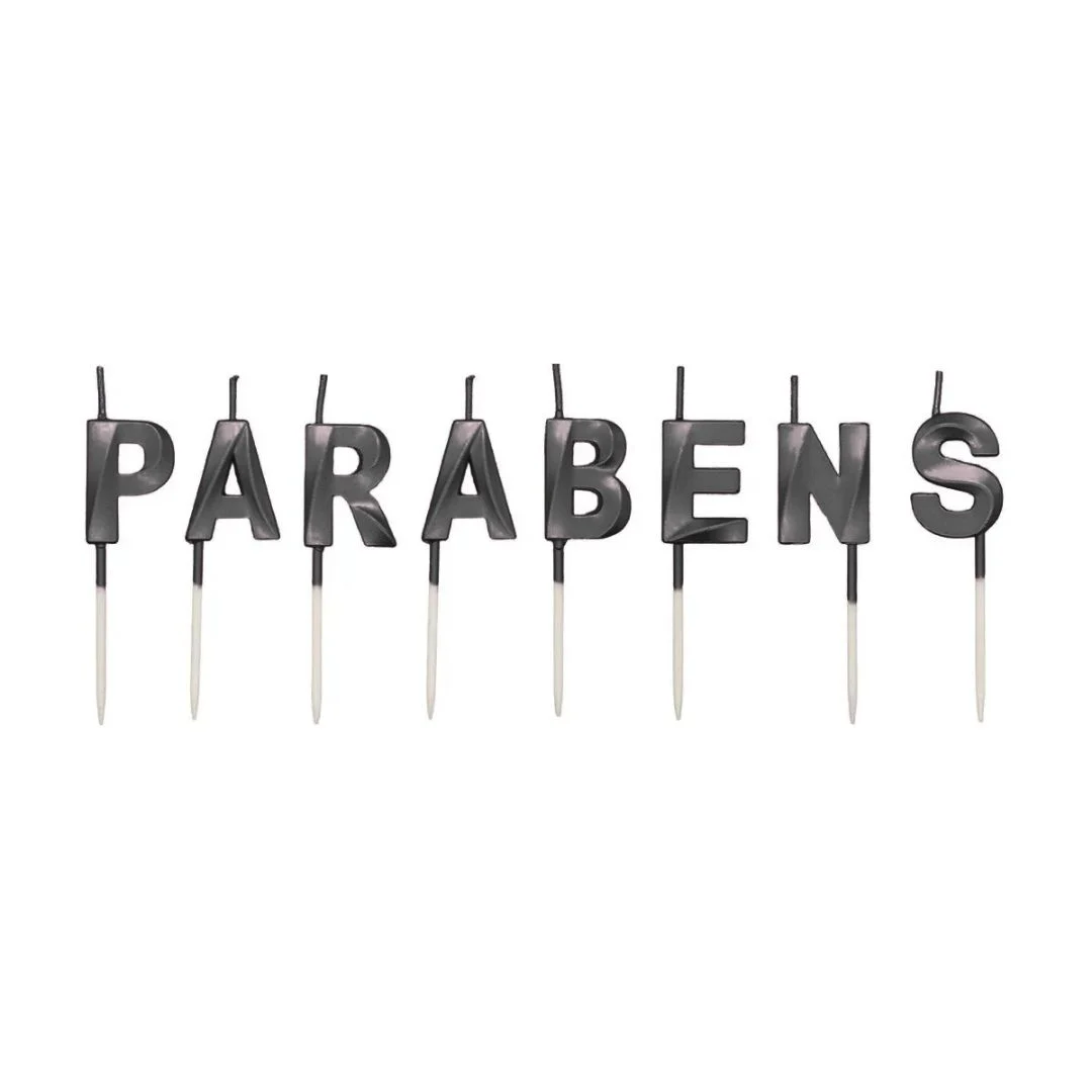 Vela Design Parabéns Preta (8uni) - Silver Chef
